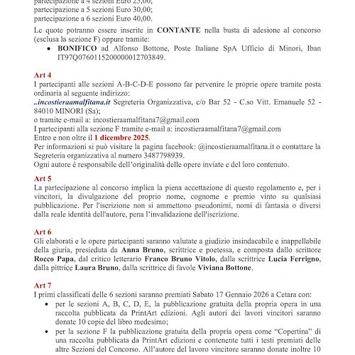 Il termine ultimo per partecipare è fissato al 1° dicembre 2025. Ogni autore potrà concorrere con opere inedite, in formato cartaceo o digitale a seconda della sezione scelta.