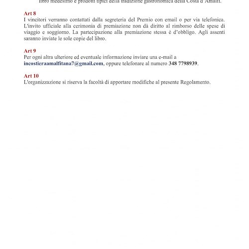 La premiazione si svolgerà a Cetara, sabato 17 gennaio 2026, nell'ambito della 20ª edizione della Festa del Libro in Mediterraneo, alla presenza della giuria presieduta dalla scrittrice e poetessa Anna Bruno e composta da critici, autori e artisti di rilievo.