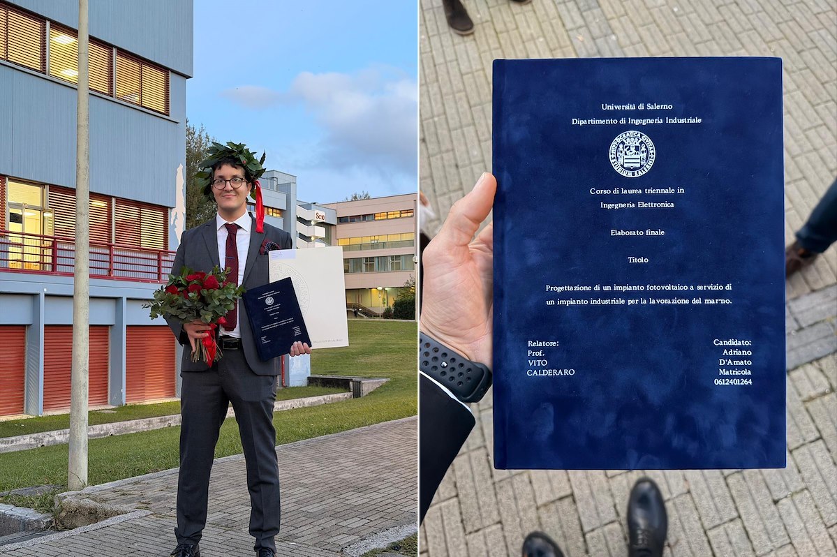 Il suo elaborato finale, dal titolo "Progettazione di un impianto fotovoltaico a servizio di un impianto industriale per la lavorazione del marmo", ha avuto come relatore il professor Vito Calderaro.