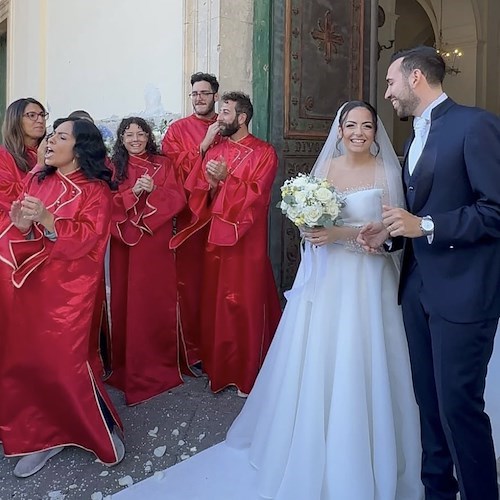 Una giornata soleggiata d'ottobre ha fatto da cornice al matrimonio tra Aurora D'Auria e Giuseppe Arpino, che questa mattina, 18 ottobre, hanno pronunciato il loro "sì" nella splendida chiesa di Santa Maria a Mare, che domina dall'alto la città di Maiori.