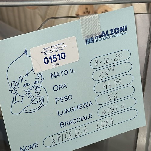 Grande festa a Scala per la nascita del piccolo Luca Apicella, nipote del titolare della Trattoria Da Lorenzo. Il bambino è venuto alla luce ieri sera, 8 ottobre, alle ore 23.08 presso la clinica Malzoni di Avellino, con un peso di 4,450 kg e una lunghezza di 56 centimetri.