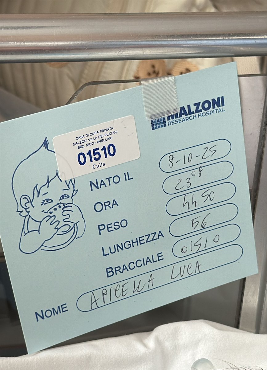 Il neonato e la mamma Federica godono di ottima salute, mentre il papà Gerardo e la sorellina AnnaChiara non vedono l'ora di stringerlo tra le braccia. Immensa la gioia dei nonni, degli zii e in particolare dello zio Luca, che con orgoglio vede il nuovo arrivato portare il suo stesso nome.
