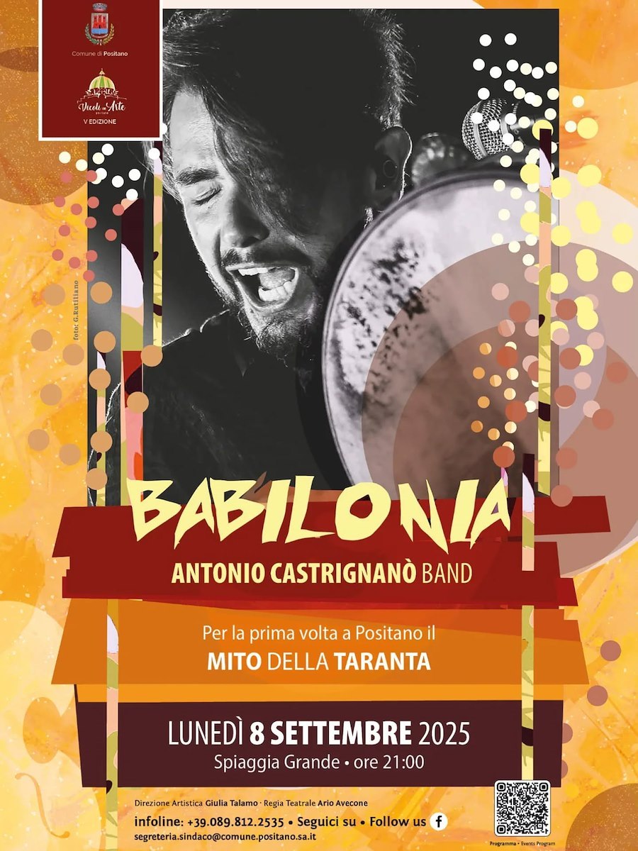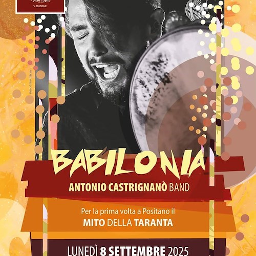 Ritmi arcaici, scanditi dal battito ipnotico delle tammorre, i grandi tamburi dalla forza evocativa. Danze che richiamano il rito del tarantismo, da fenomeno antropologico trasformato in attrattiva turistica e culturale. È in questo scenario che Positano ospiterà per la prima volta sulla Spiaggia Grande, lunedì 8 settembre alle ore 21, l'atteso spettacolo "Babilonia" della Antonio Castrignanò Band, evento a cura di Vicoli in Arte.