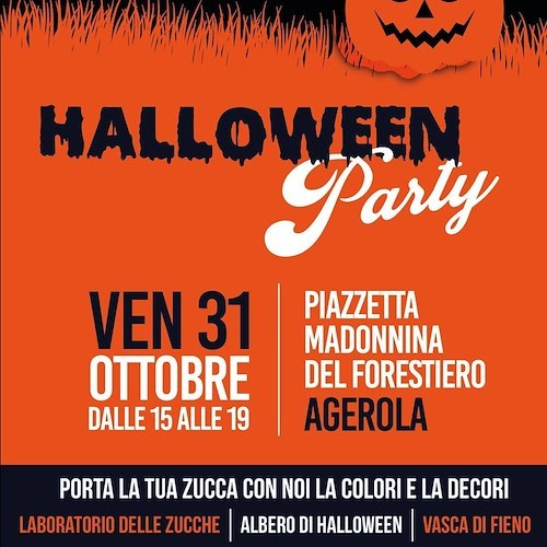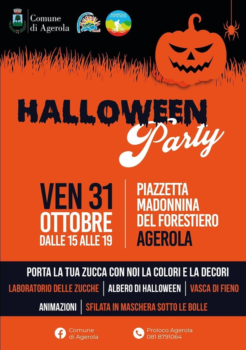 Anche quest'anno, come da tradizione, Agerola si prepara a festeggiare Halloween insieme ai più piccoli. Organizzato dal Comune in collaborazione con la Pro Loco Agerola e il Forum dei Giovani di Agerola, l'evento si terrà venerdì 31 ottobre, in Piazzetta Madonnina del Forestiero, dalle 15:00 alle 19:00, per quattro ore di puro divertimento, mistero e atmosfera autunnale. L'iniziativa è aperta a tutti i bambini e ragazzi, pronti a vivere un'esperienza speciale tra zucche, travestimenti e tanta magia.