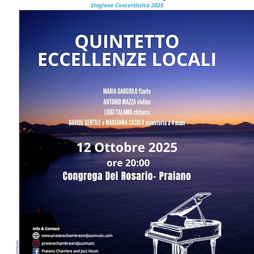 Continua la stagione concertistica 2025 di Praiano Chambre and Jazz Music, la rassegna che celebra la grande musica e i talenti del territorio in scenari di straordinaria bellezza.