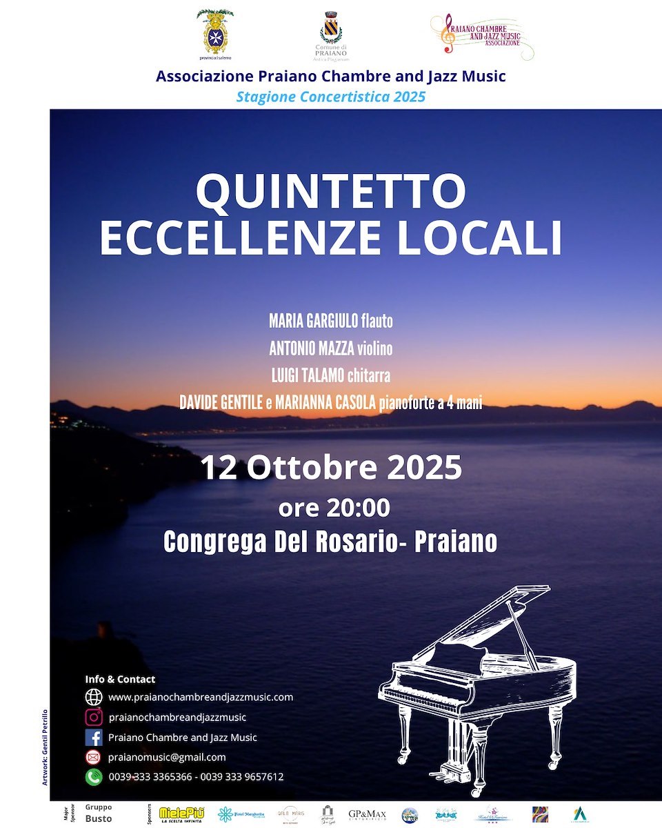 Domenica 12 ottobre, alle ore 20, la Congrega del Rosario ospiterà un nuovo e imperdibile appuntamento: protagonista sarà il Quintetto Eccellenze Locali, un ensemble formato da straordinari musicisti della Costiera Amalfitana che daranno vita a un concerto raffinato e ricco di emozioni.