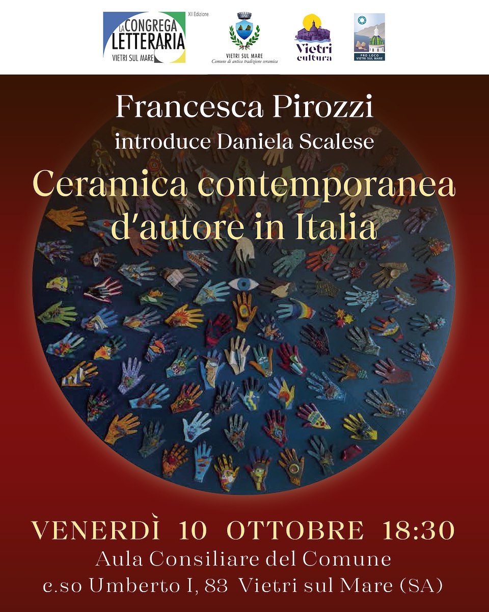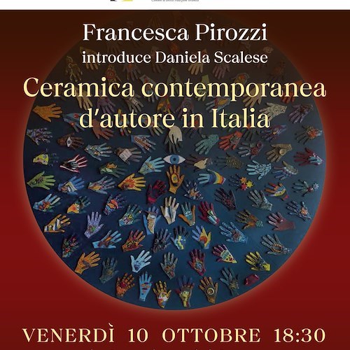 L'incontro sarà incentrato sul tema "Ceramica contemporanea d'autore in Italia", a cura dell'architetto Francesca Pirozzi, introdotta dall'architetto Daniela Scalese. Un appuntamento che condurrà il pubblico in un viaggio tra arte, creatività e innovazione, con un focus particolare sull'evoluzione della ceramica italiana, simbolo identitario di Vietri sul Mare.