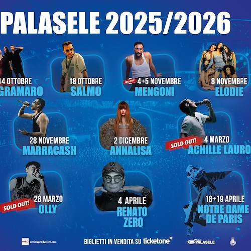 Sette gli appuntamenti già annunciati per il 2026, due già sold out: mercoledì 4 marzo con Achille Lauro, che inizierà proprio al PalaSele la sua nuova avventura "Palazzetti Live 2026", e sabato 28 marzo con Olly e il "TUTTA VITA TOUR", che porterà il cantautore live per la prima volta nei palazzetti italiani. Partirà da Eboli anche "L'ULTIMA NOTTE ROSA THE FINAL SHOW" di Umberto Tozzi che ha annunciato a sorpresa le ultime date della sua tournée mondiale con cui dà il suo addio alla scena live. La tappa è fissata per giovedì 5 marzo. Riprogrammata invece la tappa ebolitana dell'Arena Tour di Luchè che torna dal vivo nel 2026 con il tour nei palasport. Inizialmente previsto per il 19 e 20 dicembre, l'appuntamento al PalaSele è ora fissato per lunedì 23 marzo. I biglietti precedentemente acquistati rimangono validi. Ad aprile scatterà prima "L'ORAZERO IN TOUR" con il ritorno di Renato Zero che riabbraccerà il suo pubblico dal vivo a Eboli sabato 4 aprile, e poi sarà di nuovo tempo delle cattedrali con Notre Dame De Paris, l'opera popolare moderna più famosa al mondo che tornerà qui in scena sabato 18 e domenica 19 aprile. Martedì 5 maggio arriverà a Eboli "Il primo tour nei palazzetti" di Blanco, mentre chiuderà (per il momento) la stagione live Elisa con il suo ritorno già annunciato sabato 9 maggio.