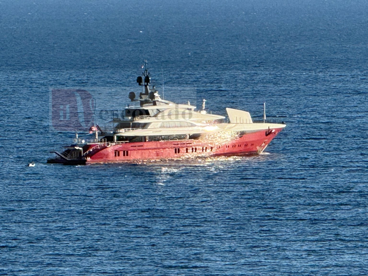 Nel tardo pomeriggio l’orizzonte marino che da Ravello guarda verso Capri appare dominato da una sagoma netta e scenografica: il super-yacht Leona, già protagonista di avvistamenti negli ultimi giorni, è ormeggiato in rada e sembra seguire, con la prua elegante e la silhouette slanciata, il corso del sole. Le sue superfici rosse e bianche risplendono quando la luce cala, riflettendo la scelta stilistica audace che l’ha reso oggetto di curiosità in tutto il Mediterraneo.