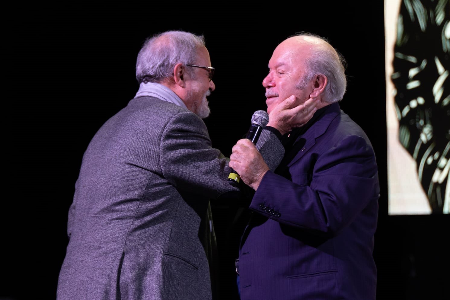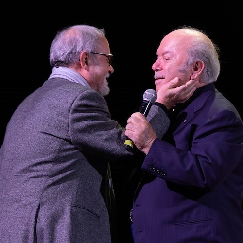 Ma il momento più toccante è arrivato subito dopo, con una sorpresa familiare che ha emozionato l'intera sala: sul palco è salito il cugino Enzo Zingaro, architetto e cugino di primo grado, che Lino Banfi non vedeva da oltre cinque anni. I due si sono stretti in un lungo abbraccio, carico di affetto e commozione, in uno dei momenti più autentici e intensi della serata.