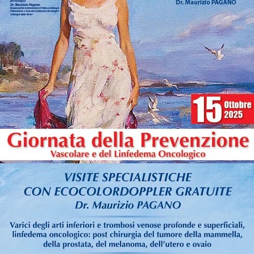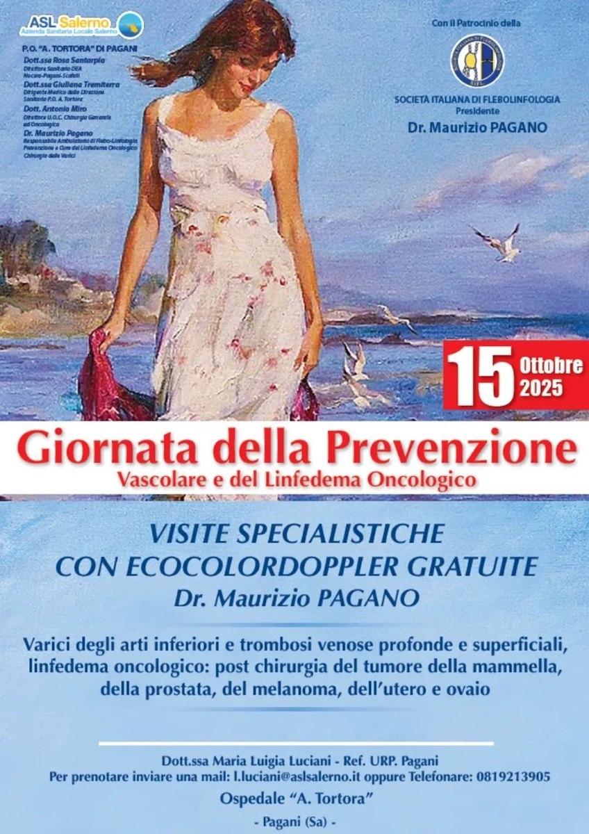 PAGANI - Parte il 15 ottobre all'ospedale Andrea Tortora di Pagani la Giornata della prevenzione vascolare e del linfedema oncologico, un'iniziativa di grande rilevanza sanitaria promossa dall'ASL Salerno con il patrocinio della Società Italiana di Flebologia (SIFL).