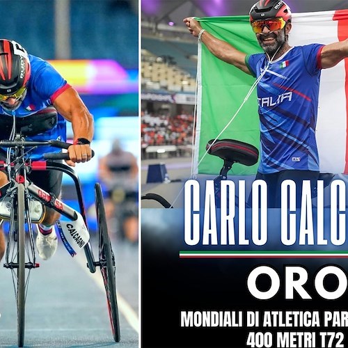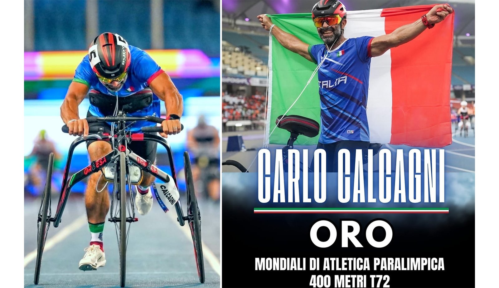 Il Colonnello del Ruolo d'Onore dell'Esercito Italiano Carlo Calcagni, Vittima del Dovere, ferito e mutilato per servizio, a seguito della Missione Internazionale di Pace della NATO, sotto l'egida delle Nazioni Unite, in Bosnia-Herzegovina, in qualità di pilota di elicotteri impegnato nel più nobile dei servizi per la collettività - salvare vite umane - ha conquistato la medaglia d'oro nei 400 metri ai Campionati del Mondo di Atletica Paralimpica.