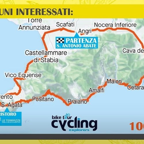 La partenza della ciclopedalata è prevista da Sant'Antonio Abate (NA) e il percorso interesserà l'intera SS163 Amalfitana, da Vietri sul Mare ai Colli di San Pietro nel comune di Piano di Sorrento, proseguendo fino al rientro a Sant'Antonio Abate, con inizio alle ore 9:15.