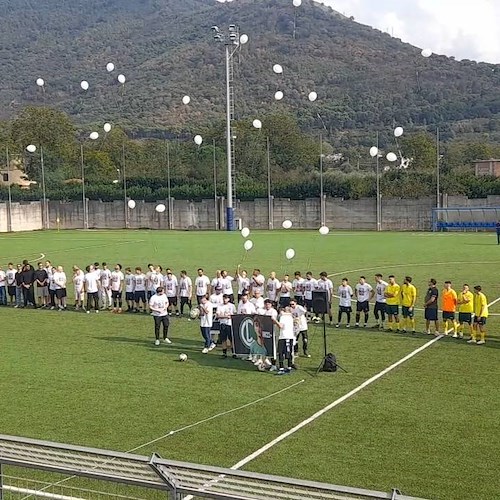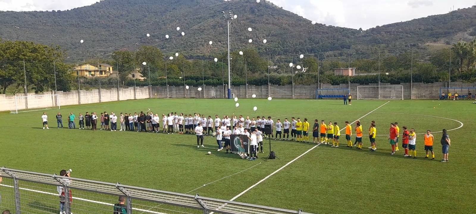 I calciatori, indossando magliette con stampato il volto sorridente di Giuseppe, hanno fatto volare in cielo palloncini bianchi, un gesto simbolico che ha commosso il pubblico presente. In un clima di rispetto e vicinanza, i sostenitori tramontani hanno consegnato un bouquet di fiori e una t-shirt celebrativa. Dagli spalti dei tifosi dello Sport Club '85 Tramonti è comparso anche lo striscione con la scritta "GIUSEPPE VIVE, È QUI CON NOI".