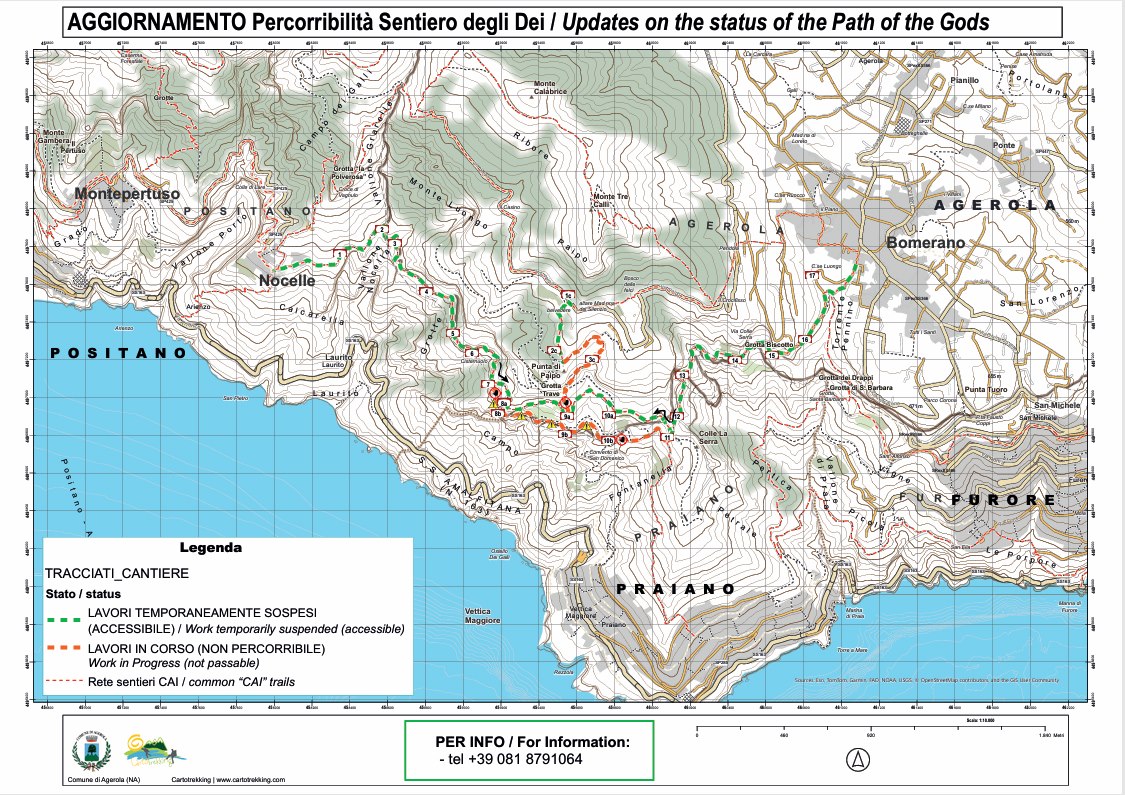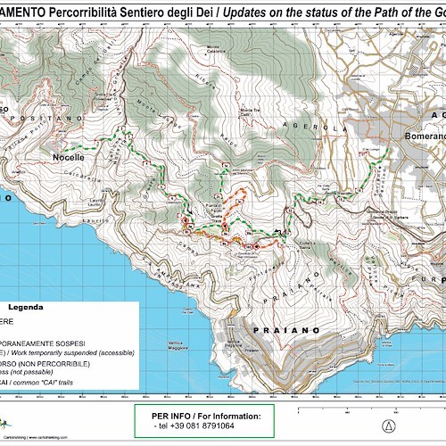 Il Sentiero degli Dei è interessato in questi giorni da lavori di messa in sicurezza disposti dal Comune di Agerola. Per consentire il regolare svolgimento degli interventi, alcuni tratti dell'itinerario sono temporaneamente chiusi al transito.